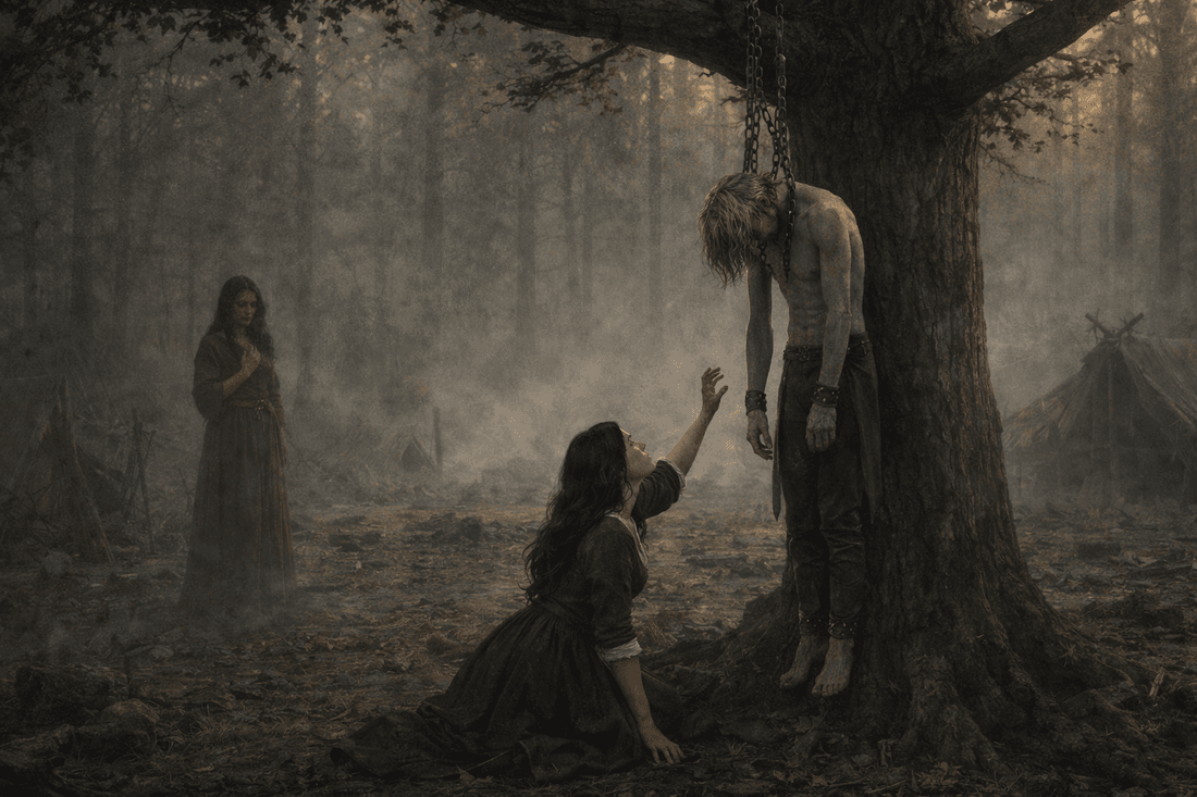 Above her, the branches creaked softly in the wind, and Caelith’s body swayed once—slow, terrible, final.