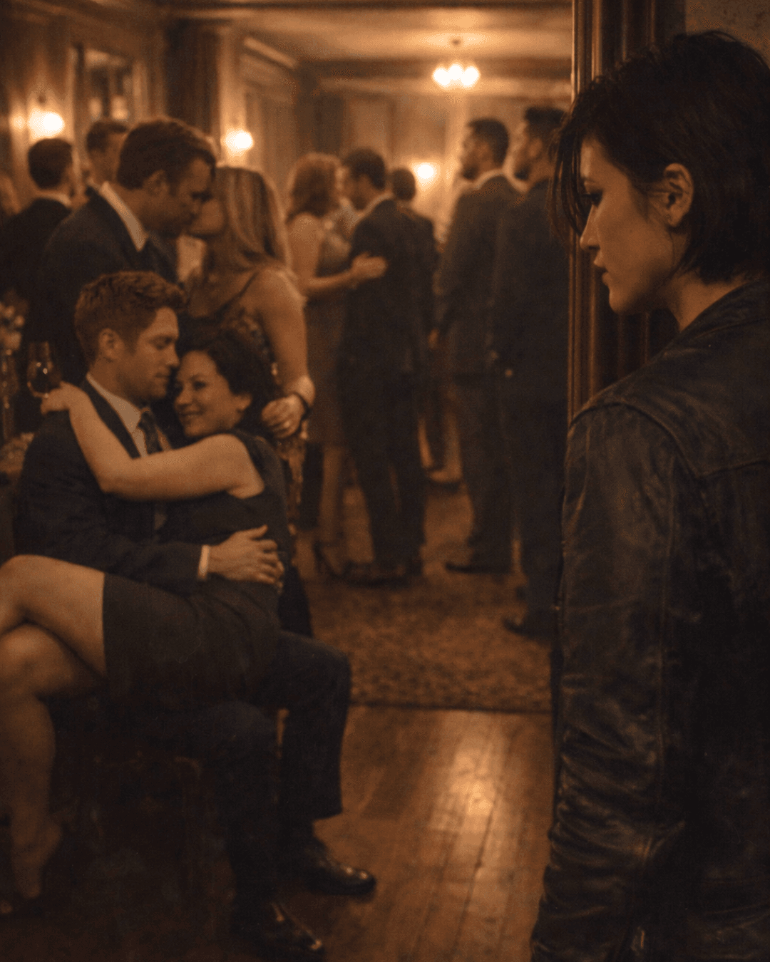 Different corners of the room, each with its own quiet little scene of debauchery unfolding. And everyone else was just… ignoring it. The kissing. The low, unmistakable sounds. The hands that weren’t even trying to be discreet anymore. The way bodies pressed together like no one in that room had anything to lose. Like everyone had already agreed—without saying a word—that this was fine. That this was normal. That this was something you just… didn’t see, even when it was happening right in front of you.